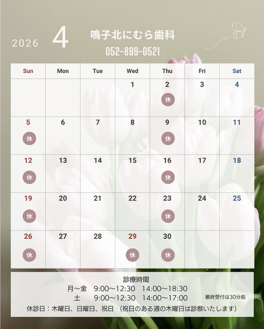 4月の診療日予定です。