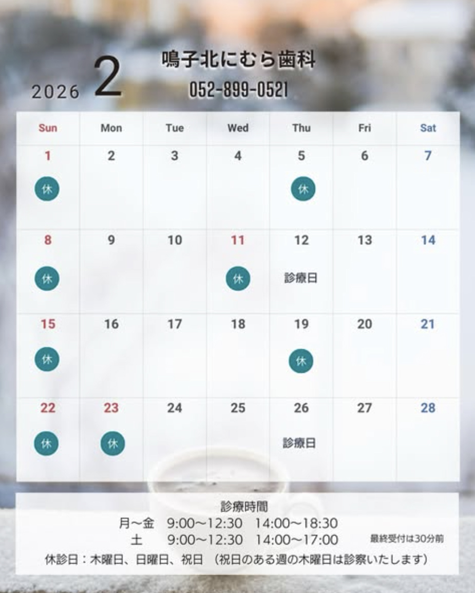 2月の診療日予定です。