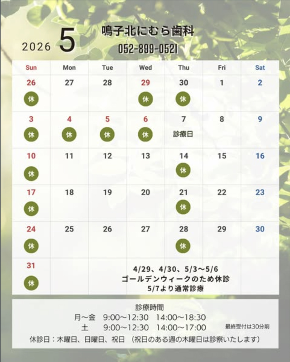 4月の診療日予定です。
